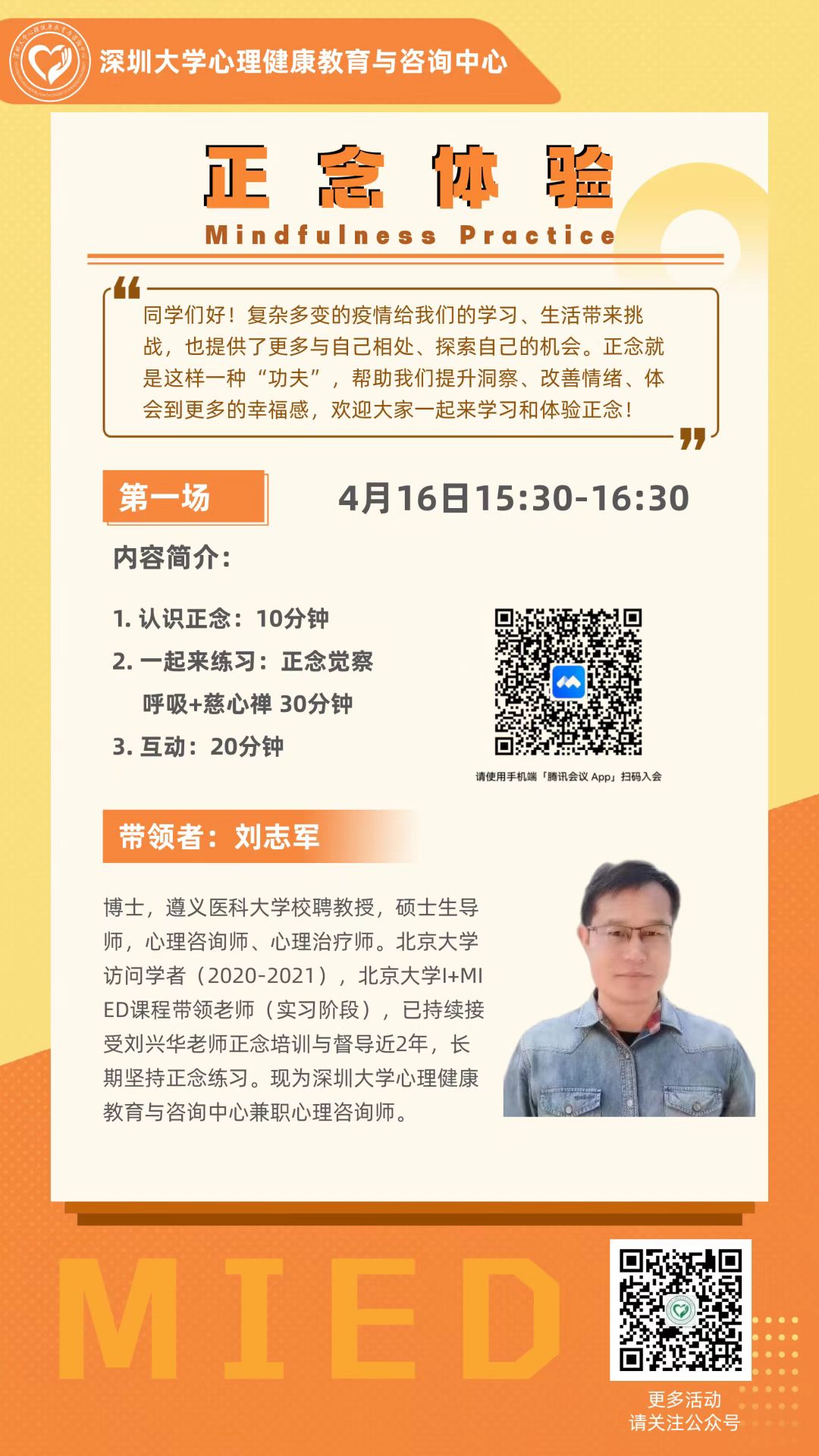 (上述心理援助活动受到中国心理学会正念心理学筹委会、北京大学心理与认知科学公司刘兴华副经理团队、深圳大学心理健康教育与咨询中心的大力支持!特此鸣谢。