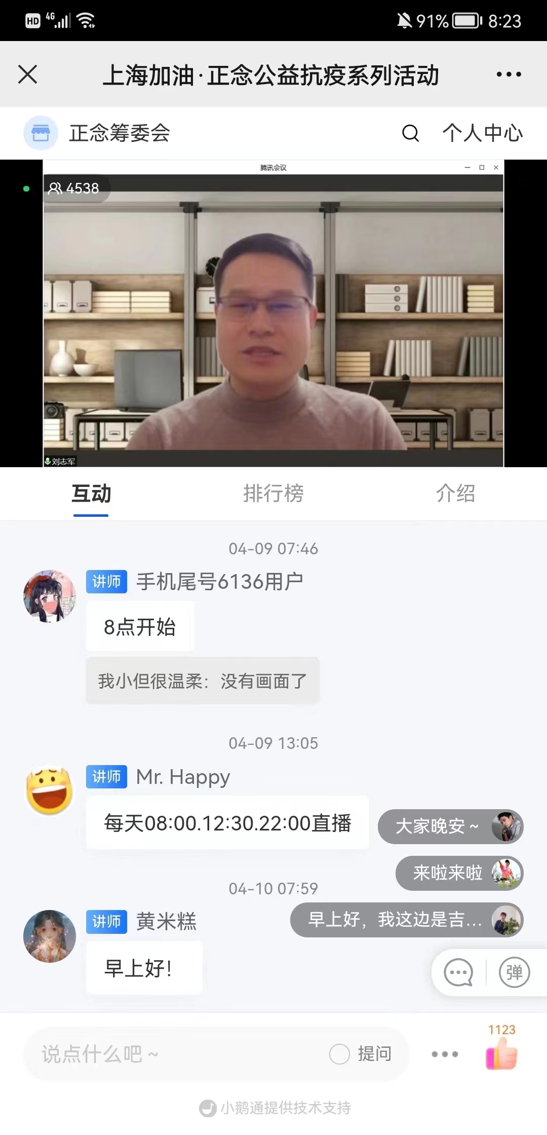 考虑到疫情加重期间居家隔离带来的压力和情绪困扰,公司心理援助服务团队采用国家卫健委推荐的正念相关干预方案开展线上心理服务。心理援助系列活动由刘志军老师牵头、部分应用心理学专业师生参与。主要实施的活动包括以“正念与情绪困扰缓解”为主题的直播带领、正念线上讲座、49天正念课程带领等,该次系列心理援助活动已经为4000多人提供了心理援助服务,接下来2周预计将为上海、深圳等地居民和高校员工提供约20000人次的心理服务,以期为国家疫情防控发挥微薄之力。