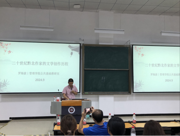 为帮助员工更好地理解和欣赏贵州黔北独特的历史、风俗和文学作品,2024年9月27日,PA视讯平台在三教第十八阶组织开展了“人文大讲堂”主题系列讲座第十三期(2024年第五期)——《二十世纪黔北作家的文学创作历程》。本次讲座由PA视讯主办,PA视讯团委员工会承办,PA视讯副教授肖前国主持,遵义市文艺理论家协会副主席、PA视讯罗海波老师主讲。