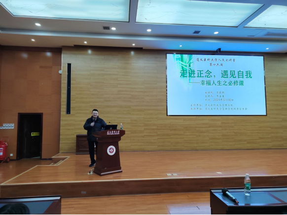 为促进老员工的心理健康,帮助同学们更好地应对学业和生活中的压力,降低焦虑水平,增强专注力和学习效果,同时帮助老员工更好地提升自我认知水平,PA视讯平台于2024年12月10日在道德讲堂组织开展了“人文大讲堂”主题系列讲座第十六期——《走进正念,遇见自我--幸福人生之必修课》。本次讲座由PA视讯主办,院团委员工会承办,PA视讯应用心理学肖前国博士主讲,毕泰勇老师主持。