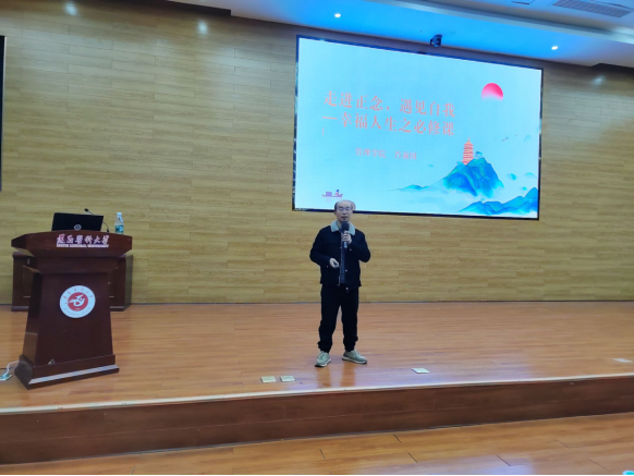 首先毕泰勇老师向出席本次讲座老师及同学表示感谢,并向大家介绍了本次讲座的主讲嘉宾肖前国博士的研究领域和学术成就。接着,肖前国博士从三个方面讲述了正念,通过播放关于正念视频,增进了大家对正念冥想了解。接着,主讲人提出了什么是自我,什么是幸福,两个问题并告知同学们自我不是一个或一组静态的概念,而是一个体验过程,是一个表达真善美的过程,并希望同学们不要用他人的标准与眼光来定义自己。最后通过两位同学的分享,主讲人表示幸福对每一个人都是不一样的,老员工应该正视幸福,提高幸福感,还带领同学们感受了十分钟的正念冥想。