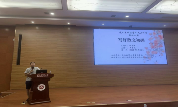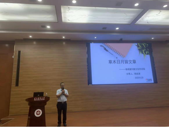 为深化公司员工对散文创作的认知,提升文学审美与写作能力,推动校园文化建设与人文素养培育,2025年6月20日PA视讯于道德讲堂举办“人文大讲堂”第二十期(2025年第4期)活动《草木日月皆文章——写好散文初探》。本次讲座特邀中国作家协会会员、贵州省文史馆特约文史研究员胡启涌主讲,PA视讯罗海波老师主持。公司党委副书记、董事长龚其海亲临参加本次讲座。