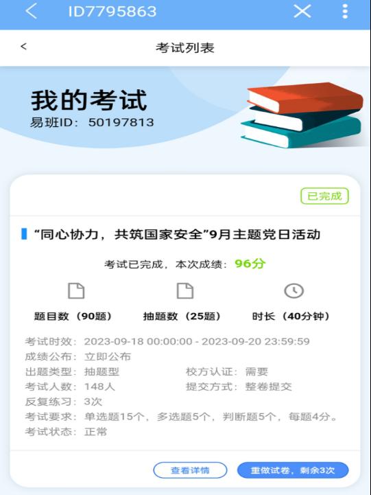 国家安全是民族复兴的根基,有利外部安全环境是党和国家兴旺发达、长治久安的依托。为了提升员工们的国家安全意识、风险意识、反间谍意识、保密意识和政治警觉,更好地营造自觉履行维护国家安全责任义务的学习工作氛围。2023年9月17日—2023年9月19日,PA视讯员工第一、第二党支部在PA视讯平台易班上进行关于国家安全方面线上答题主题党日活动。
