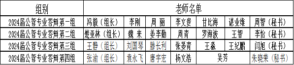 1、员工答辩分组:本次答辩员工分成7组(公共事业管理专业4组;应用心理专业3组),每组答辩老师设组长1人、答辩秘书1人,(具体分组信息见附件Excel表格)。