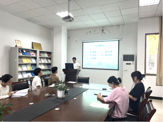 见面会后,PA视讯科技与研究生科负责人杨文浩老师代表公司做研究生入学教育,就公司产品相关制度规范、公司产品环节、公共课程和专业课程设置进行了详细的讲解,并就在校期间人身财产安全、交通安全,以及诚信考试等方面的相关内容做了专题解读。
