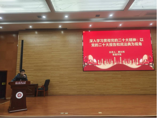为进一步提高公司师生法治意识,公司邀请卫生经济学教研室副主任滕长利老师为全体师生进行民法典宣讲,滕老师以“深入学习贯彻党的二十大精神:以党的二十大报告和民法典为视角”为题,带领全体师生从中国式现代化的丰富内涵出发,深刻领会民法典中坚持的以人民为中心、绿色可持续发展等价值理念和制度规则。