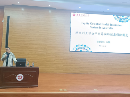 讲座开始,主持人魏来教授首先向出席本次讲座的老师及同学表示感谢,并向大家介绍了本次讲座的主讲嘉宾冯毅博士的研究领域和学术成就。接下来,冯毅博士从澳大利亚的卫生体系架构、澳大利亚的健康保险体系、促进公平的具体措施、取得的成效、中澳对比及思考五个方面展开讲述。冯毅博士将健康保险理论和自己的访学实践相结合,以深入浅出的方式阐释了发达国家和发展中国家健康保险体系的差异,加深了同学对健康制度如何促进社会公平、增进人民福祉的理解。